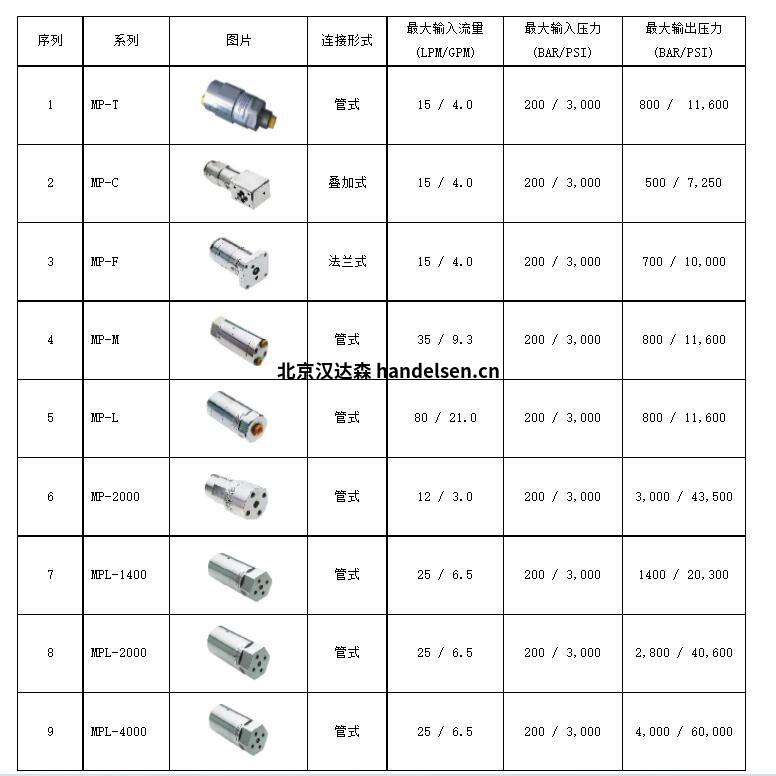 增壓比1.5 : 1到20 : 1,最高壓力可達400MPa;