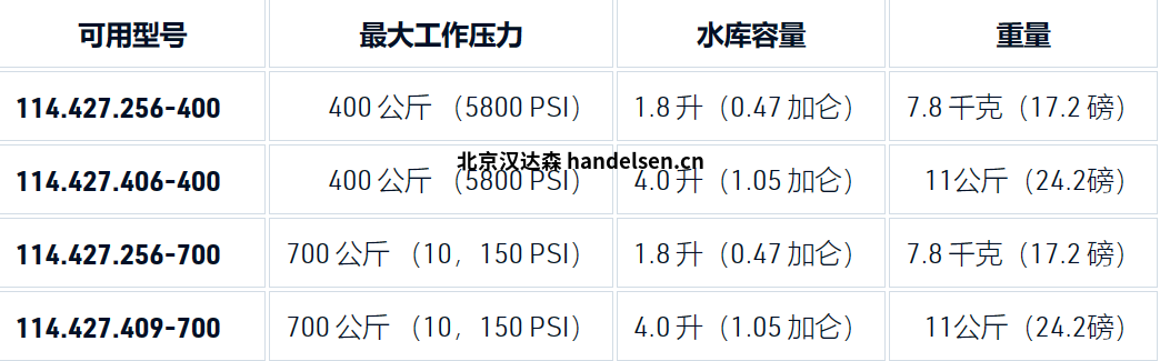 Amtec 油手泵系列 114.427系列型號